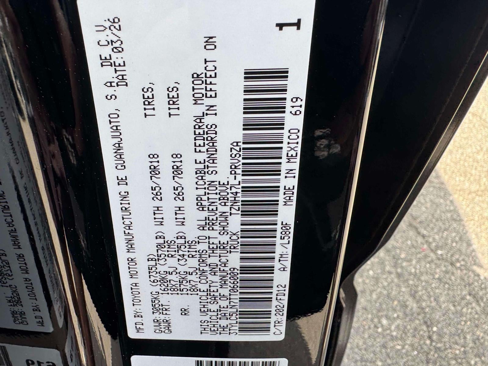 - Vehicle Name: Toyota Tacoma 4WD
