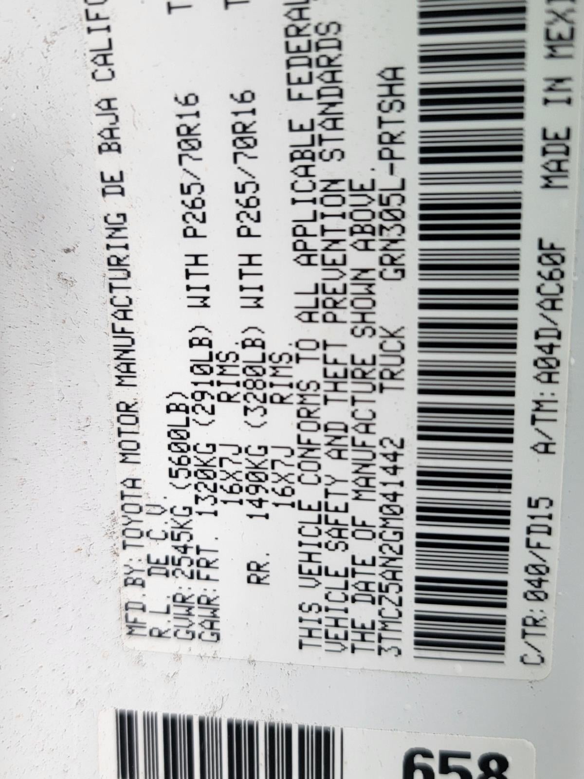 - Vehicle Name: Toyota Tacoma