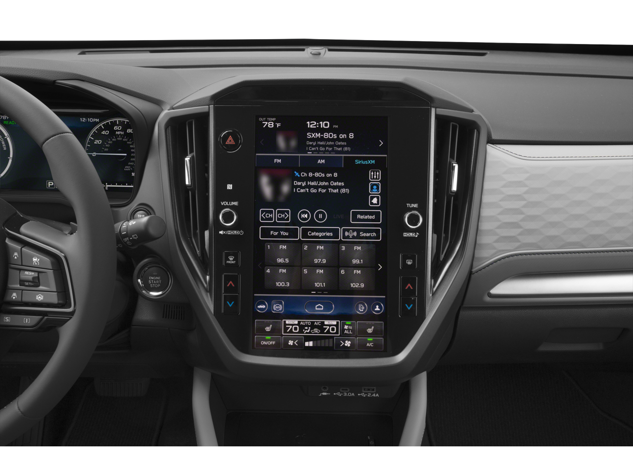 - Radio: Subaru 11.6" Multimedia Navigation System -inc: valet mode, integrated center information display, AM/FM stereo HD Radio, multi-touch gesture high resolution display screen, voice activated controls, voice activated navigation, Bluetooth® audio streaming and hands-free phone connectivity w/SMS text messaging connectivity (refer to subaru.com for cell phone compatibility), TomTom navigation software w/What3Words, iPod control capability, SiriusXM w/360L (4 months free trial/subscription required after), SiriusXM Travel Link (3 years free trial/subscription required after), SiriusXM Live Traffic (1 year free trial/subscription required after), smartphone integration for Android Auto and Apple CarPlay w/full screen view and wireless connection, USB and Over The Air (OTA) audio system update, TomTom navigation system update w/USB/Map Over The Air (MOTA) (3 years free map updates), steering wheel control switches for audio and Bluetooth®, 6 speakers, 3.5mm auxiliary input jack and roof mounted audio and satellite antenna