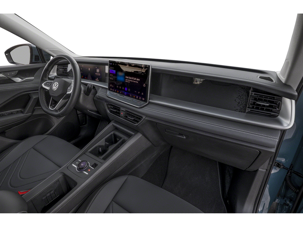 - Radio: MIB4 Composition Media Touchscreen AM/FM -inc: WMA/MP3/FLAC player w/USB, 12.9" touchscreen multi-function center display w/backlit sliders, voice control, 6 speakers + center speaker (7 speakers total) sound system, capability for in-vehicle 4G LTE enabled Wi-Fi (cellular data plan required; includes limited trial), capability for VW Car-Net services (capabilities for services vary; requires enrollment or subscription), Bluetooth® connectivity (for compatible devices), SiriusXM w/360L (w/3-month free trial subscription; 360L services require acceptance of Car-Net terms), App-Connect smartphone integration (w/Apple CarPlay, Android Auto and MirrorLink) via USB, wireless App-Connect smartphone integration (for compatible devices) w/multi-phone pairing capability, 45W fast charging (for compatible mobile phones and accessories) via USB in both rows and Qi wireless inductive charger, cooled, up to 15W (for compatible mobile phones and accessories)